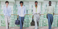 Color, light and the graphic lines of both the location and the clothes play a key role in expressing the essence of the collection and its distinctive mismatch of 3D textures, volumes and shiny/matte effects, all awash in terracotta red, turquoise, plum, sky blue and burnt orange. The striking architecture of the Muralla Roja building, characterized by interlocking strairs, platforms and bridges, exalts a lifestyle appeal that Goode elevates with his effortless and dynamic sprit, melding time-honored savoir-faire with a fashion-forward twist.