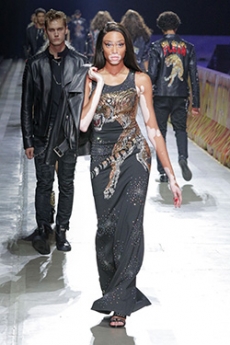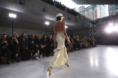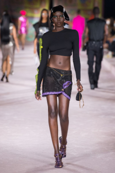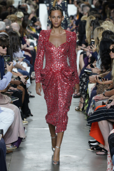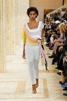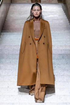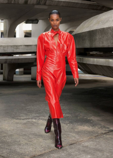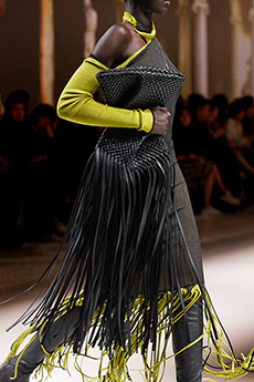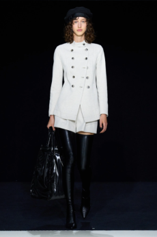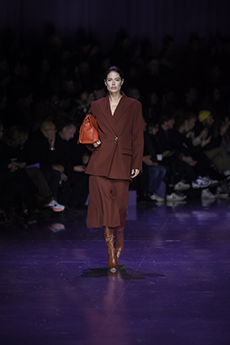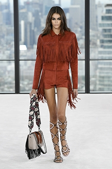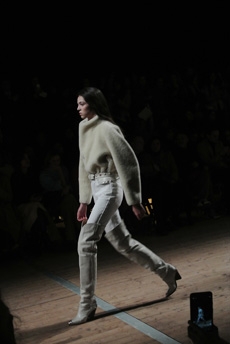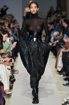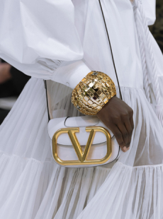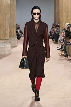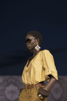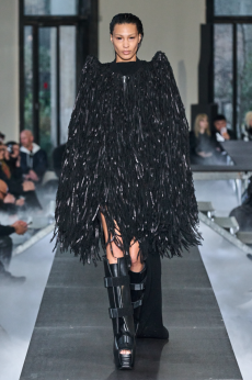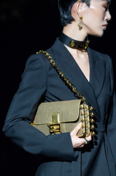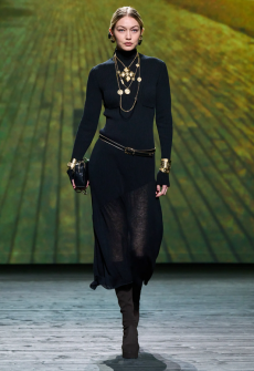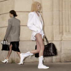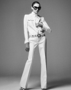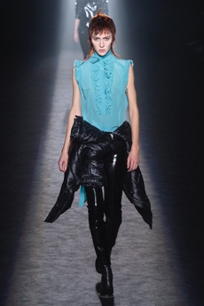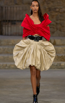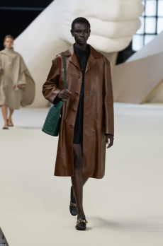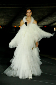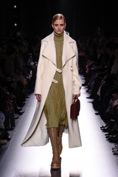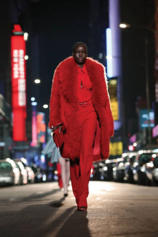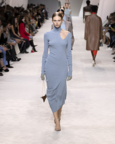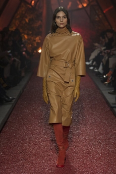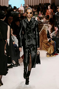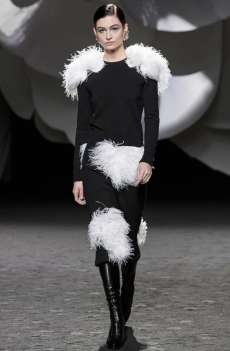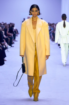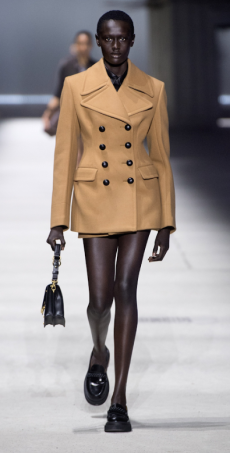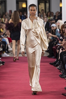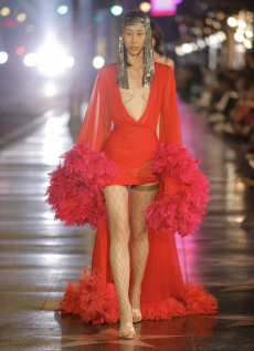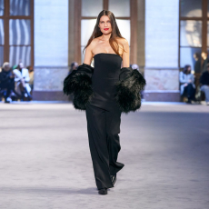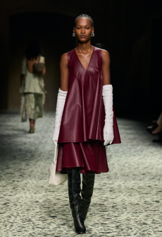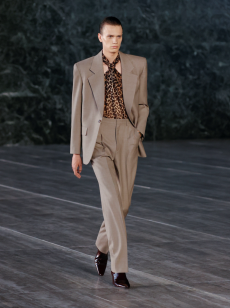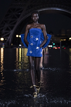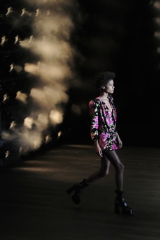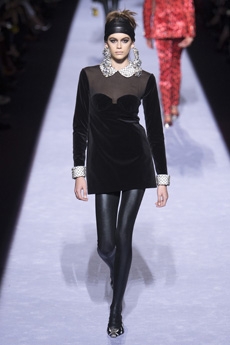 Bold short dresses in velvet, caramel and black leather matched with long up-to-the-neck gloves as to create a tromp l’oeil effect for maxi shoulders. Thigh-high boots in patent leather and rhinestones with ruches - sure to become the obsession of next season. But also strong day looks with an invasive sense of masculinity: denim with mohair sweaters, shearling jackets, or a simple tee. It’s that subversive soul that Yves Saint Laurent himself was known for. It’s that unexpected atmosphere that everyone is waiting with anticipation at this fashion house. As his predecessor, Vaccarello will make everyone want to wear his clothes. With no exceptions.