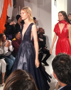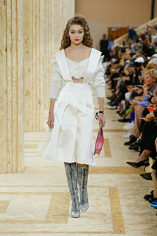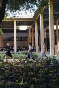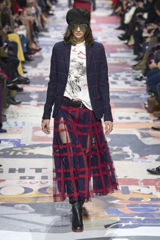 Maria Grazia Chiuri is not easily affected by predictions. She has a vision and she is certainly not playing the safe card. Dior Fall Winter 2017 was entirely declined in shades of blue, a blue that Chiuri found in the archives of Dior – particularly on a taffeta silk dress designed in ’54 - and quickly got fascinated by. It’s the blue of uniforms, of elegant evening dresses and certainly of denim. It’s a young contemporary collection. Chiuri wishes to picture the contemporary woman emerging the tense political climate of our time.
