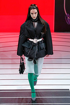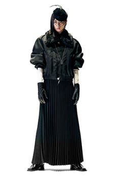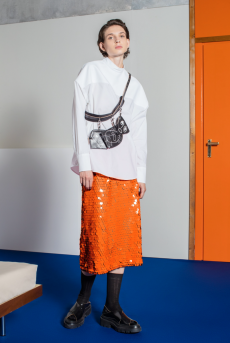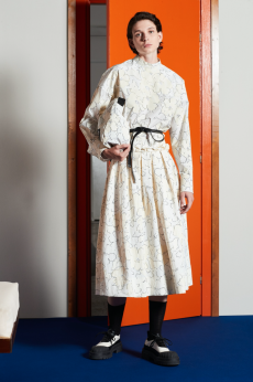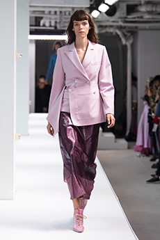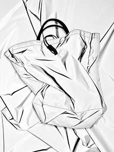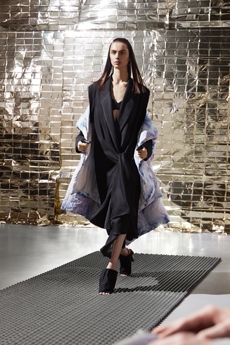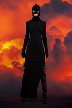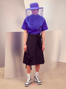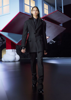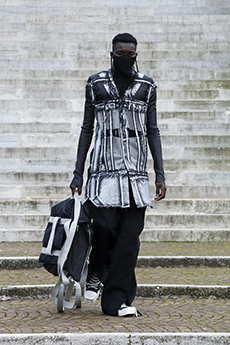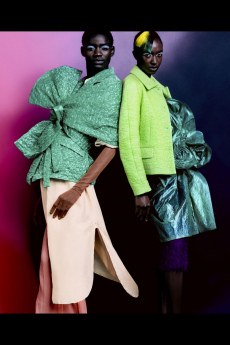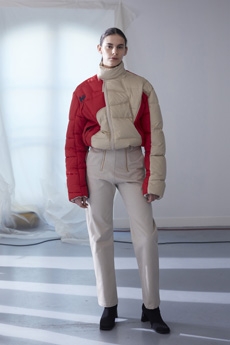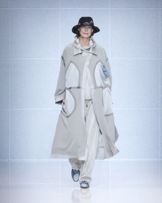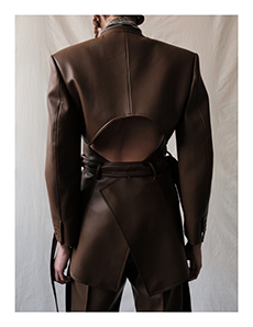A mobius of forms, shaped in the seam lines, leading to dramatic volumes. Beautifully balanced but also true to his roots, Glenn Martens created a collection where Y/Project's identity is declined to a new sphere, all played through Martens’ all-time favourite ironic approach to dualities.