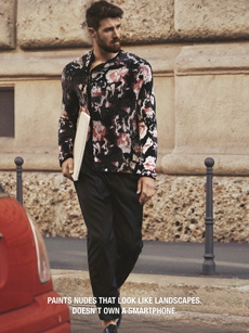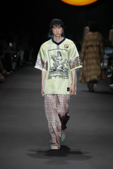 Interestingly, hip-hop is made elegant in this line giving birth to intriguing pieces such as the dark floral garments designed by Japanese artist Toru Kamei.