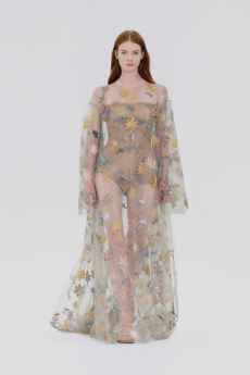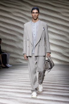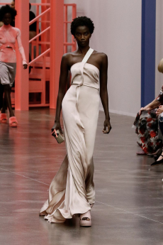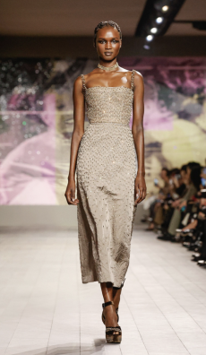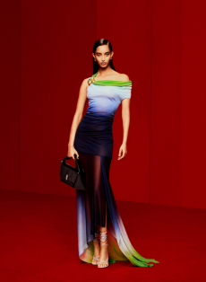 This season, the brand leaned into dualities: crisp tailoring against flowing chiffons, washed pastels set beside stark blacks and metallics. The tension gave the collection its shape. It wasn’t about reinvention so much as recalibration—refining a language he’s been speaking for decades into something relevant for a restless audience. Accessories functioned less as ornaments and more as structural punctuation, grounding looks without tipping into excess.