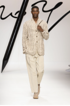 Crisp cotton poplins, fluid silks, cool linens, and draped worsteds echo the warmth and softness of the season. Each piece is designed to move with the wearer, embracing lightness without compromise on structure.