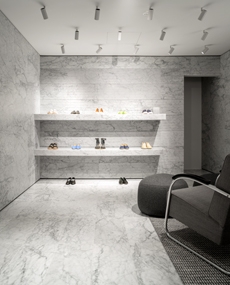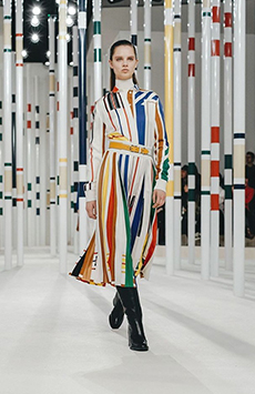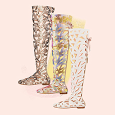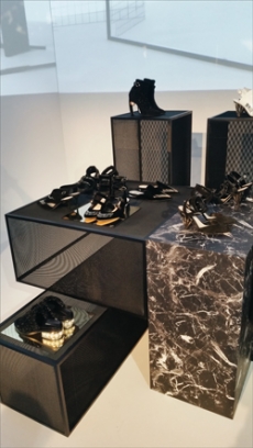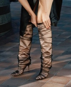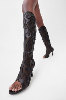 Geometric and graphic lines adorn the heels and boots for this strong and architectural collection. The English designer - inspired by artists like Daniel Buren - used a sculptural approach and the forever-favourite feminine/masculine dichotomy references.