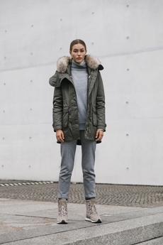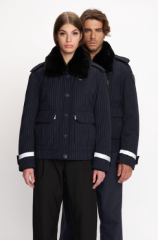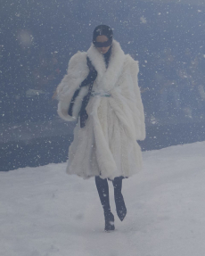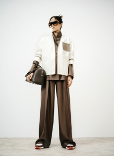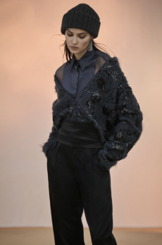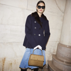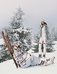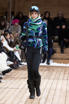 Snakeskin jackets, chinchilla bombers and full-length overcoats feature alongside astrakhan and crocodile skins as the ultimate statements of elegance whether on the slopes or in the city. Trousers are high-waisted and denim takes centre stage in trousers and double-breasted jackets.