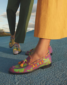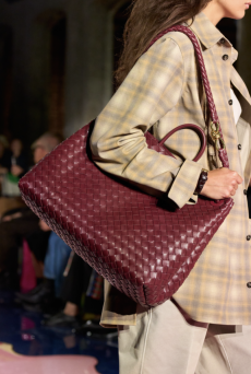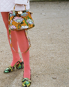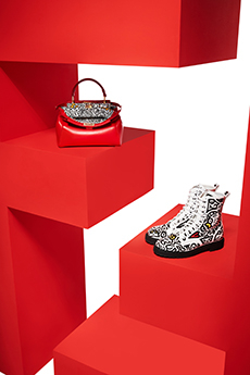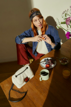 Shoes chart the day’s passage: sneakers and platforms carry the morning rush, ballet flats trace the afternoon’s quieter pace, sculptural heels claim the night. Craftsmanship becomes language — crocheted leather fringes, braided knots, tubular weaves — ancient techniques reimagined into modern gestures. Each detail, tactile and alive, transforms heritage into contemporary poetry.