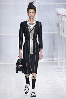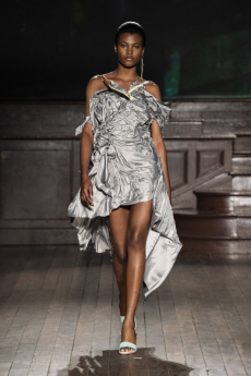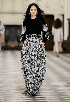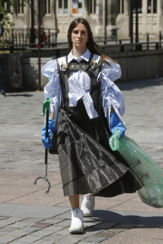 Mixed and matched tartans and handbags with imaginary propaganda newspaper titles gave a further energising accent to a splendid collection full of craftsmanship and a romantic post-industrial atmosphere.