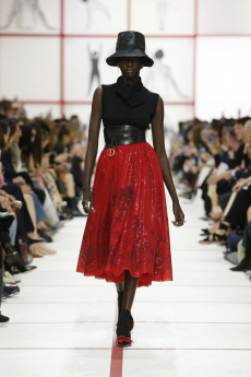 Last season’s motto “We should be all feminists” left the place to a more consistent and strong statement where the clothes speak by themselves. The basques created by Stephen Jones give a further accent in this sense. It almost as we see a troupe of suffragettes, marching one after the other advocating women’s freedom to dress however they find fit.