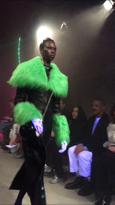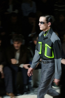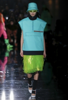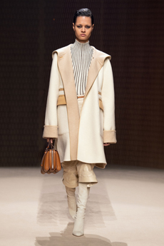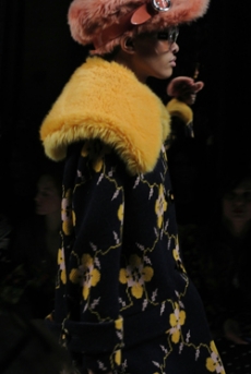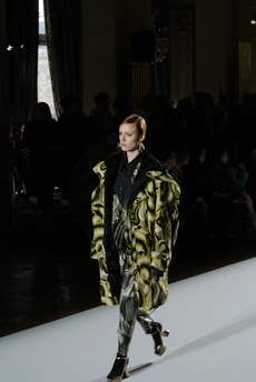 It was certainly the beautiful shearling one of the spotlight of the collection. In deep cobalt blue with black leather details, in denim, or in a striped rainbow coloured version, to pump up our gloomy mood in rainy, cold Paris.