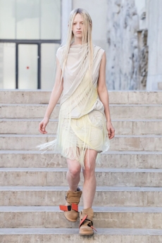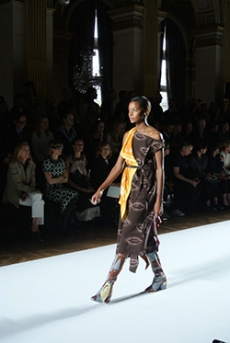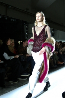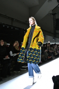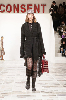 The evening's highlights included the showcase of Masters' students Jeremy Gaillard, Flore Girard de Langlade and Vanessa Schindler, who is the winner of the Prix d'Excellene Hans Wildorf. Additonally Zurich favourites enSoie had the audience craving for its nonchalant style while Vivienne Rohner strutted the catwalk laid with previously unseen carpets by Schonstaub. Special guest designerDorothee Vogel's desirable duvet coats and floaty dresses ended the show.