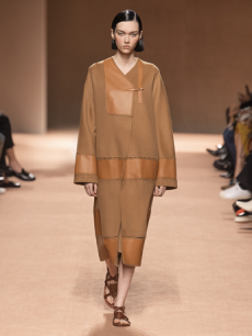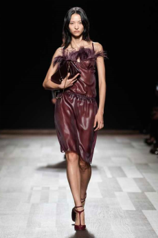 As in every season we see experimentations with butter lamb leather in exceptional peplum waist-cinching tops, dresses, suits, outwear in a variety of colours: lipstick red, moss green, and the forever favourite almond and black. There are so many fascinations Anderson took into account for Loewe Fall Winter 2017 and it just feel fresh and captivating.