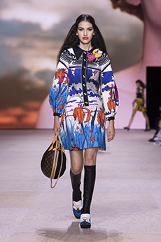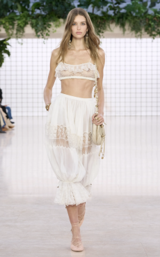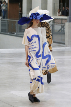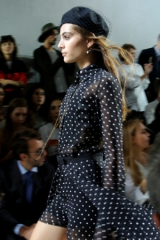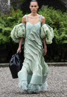 Like for his eponymous label, Anderson is able to create a dialogue between the arts, where fashion is at its centre, without any stretch. The romantic and enchanting feeling reminiscent of Gone with the Wind’s Rossella O’Hara ball gowns together with a playful splash of Commedia Dell’Arte’s Pierrot and Harlequin, where the polka dots and the western hat felt perfectly parts of the same image. But also the signature handkerchief hem dresses and a parade of countless accessories declined in new colours like the polka dot iconic puzzle bag.