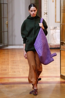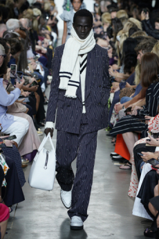 The mix of fun, classic, and urban elements is something we have seen season after season where individuality has been the key. Beautiful leatherwork as rooted in the brand's Spanish heritage, but also Anderson’s favourite hints to fishermen and sailors’ daily-life. Presented in the Parisian showroom the collection is the image of a further complexity and playful daring attitude from the English designer now in his fourth year at the helm of Loewe.