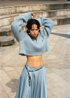 This capsule is an ode to the multifaceted woman: poised and powerful, intellectual yet intuitive, always in motion. In "Becoming Undone," Miró’s love for deconstruction meets MAX&Co.’s craftsmanship in a lineup that celebrates contradiction as a form of truth. Exposed seams, raw edges, sculptural tailoring, and oversized silhouettes tell a story not of perfection, but of process - of inner strength, visible.