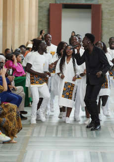 Oversized martial arts belts are reimagined as sculptural gowns, while vibrant knots punctuate minidresses with architectural precision. Zen-inspired ensembles pair pleated balloon trousers with tailored vests and elegant shirts, and patchwork jackets crafted from Taekwondo belts fuse heritage with modernity. Materials—Judo cotton, canvas, wool, and technical jersey—enhance fluidity, reinforcing the collection’s kinetic ethos.