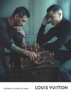 Set against the green expanse of the pitch, the trunk itself becomes an extension of the award it carries. Its classic Monogram canvas, reinforced with brass corners and protective locks, is instantly recognizable yet deeply personal, acting a reminder that Louis Vuitton’s origins lie in creating vessels for journeys of ambition and discovery. Inside, the velvet-lined compartment reveals the Ballon d’Or as if on a stage, elevating the moment of unveiling into a ritual of global significance.